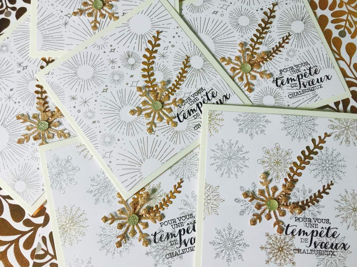 Voici une petite série de carte de voeux réalisée dans les tons de or et champagne pour envoyer mes voeux à mon groupe d'amie scrapeuses!